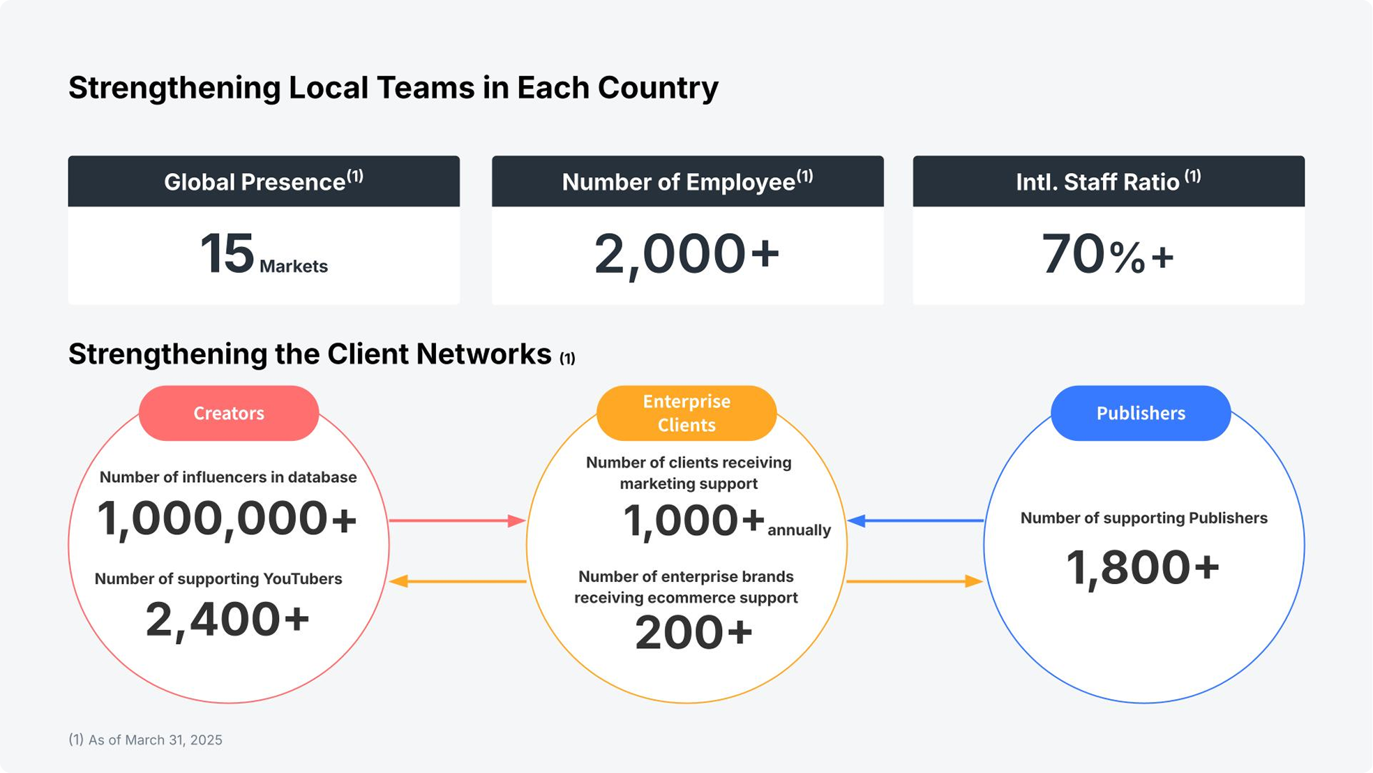 By having strong management and local teams in each country, we are able to localize solutions for local customers and develop local networks of influencers and media. Acquiring local networks is a particularly time-consuming process, so the networks we have built across Asian countries and regions since our founding represent a significant competitive advantage.